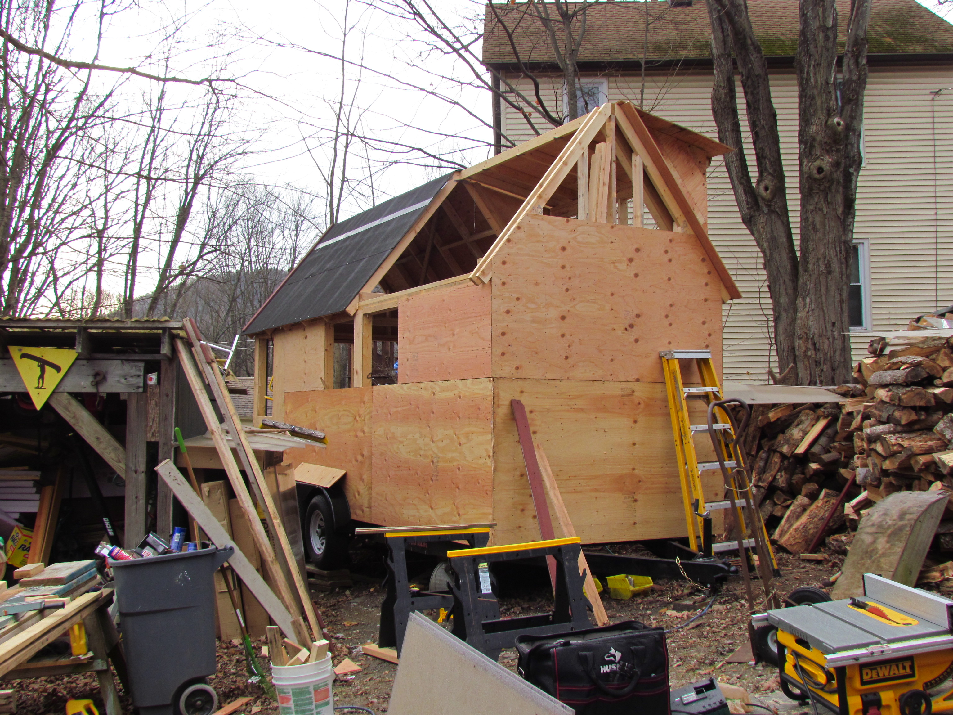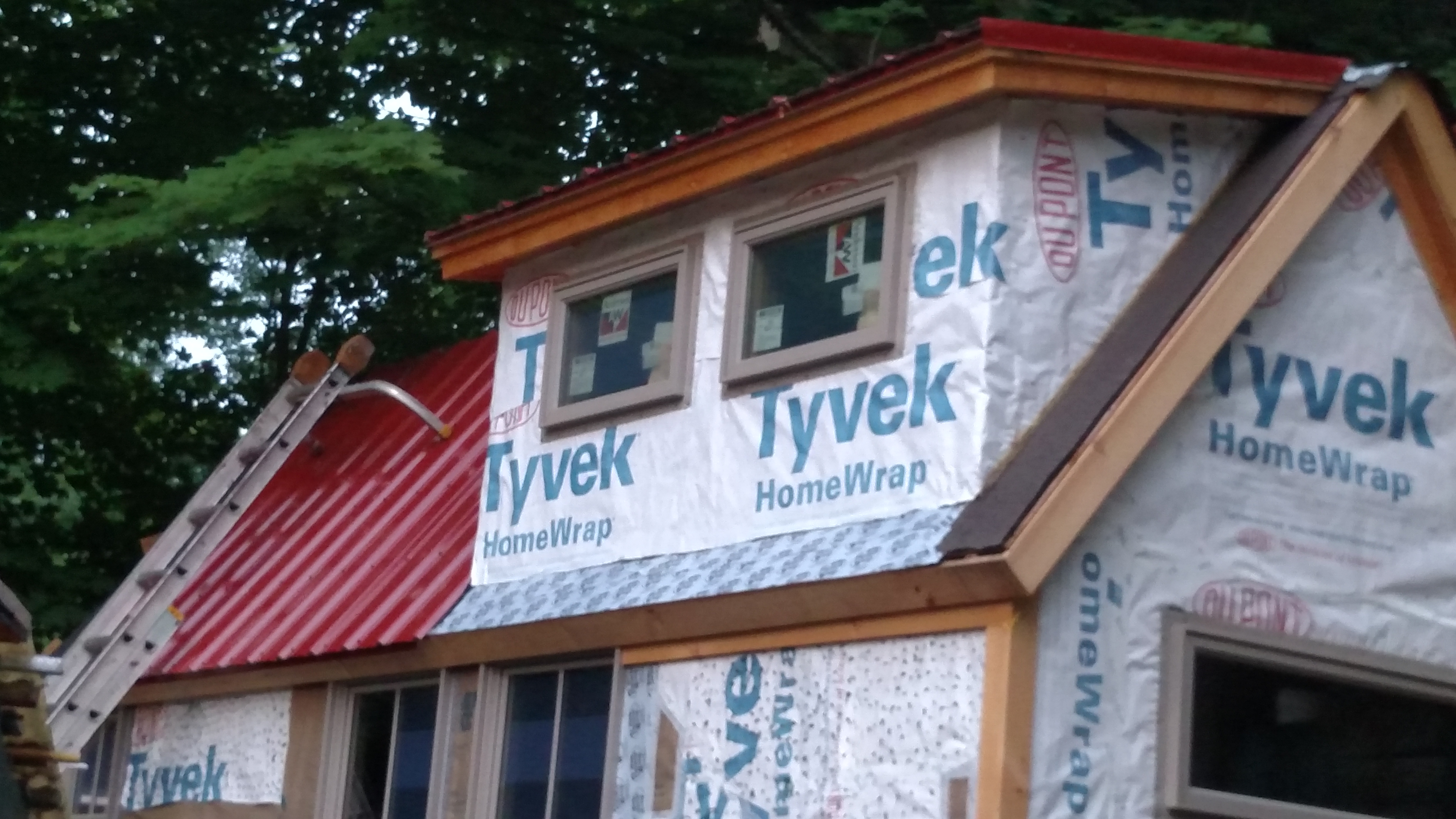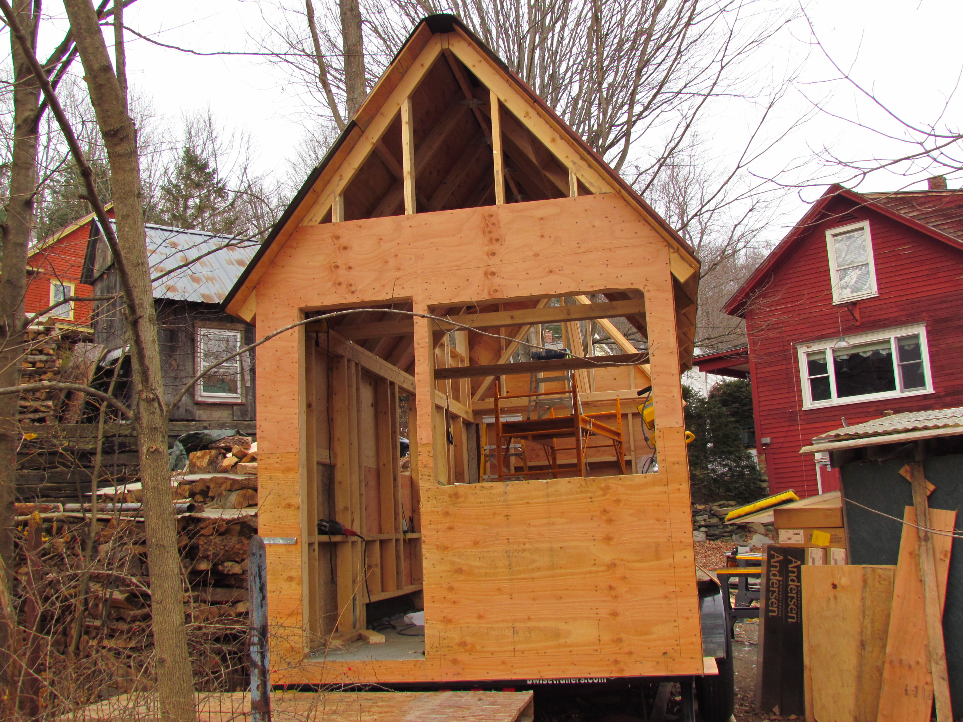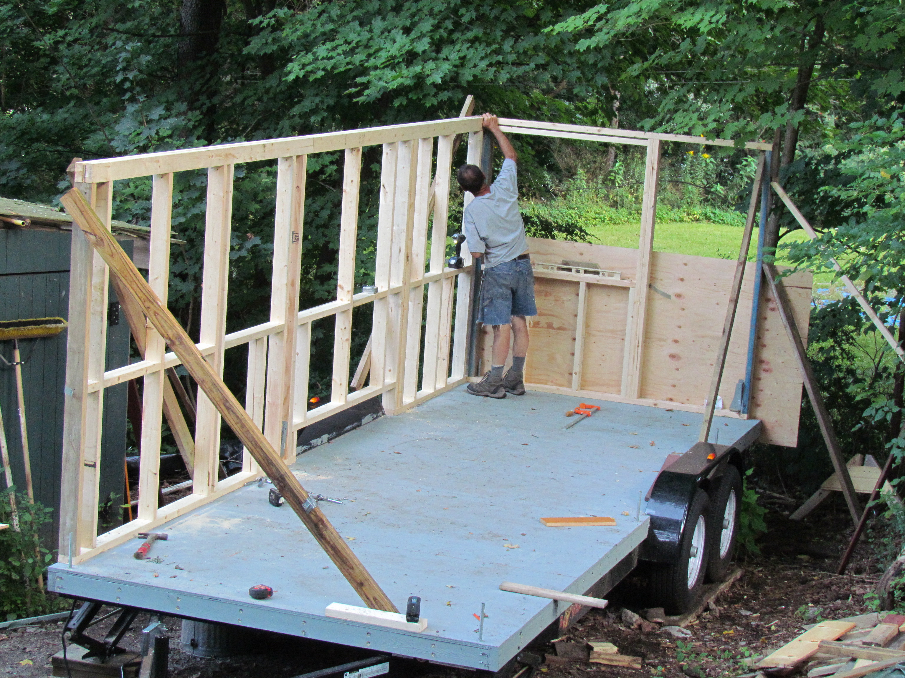 Two walls up!! It took just about all day on Monday, the holiday to do the side wall. The next one should go faster. It’s so exciting to see our little house starting to take shape. I know it looks like Chet is doing all the work but that is far from the truth, Camiila painted the deck when she was home the other weekend and I am manning the tablesaw, measuring and cutting. It’s just that I’m the one with the camera.