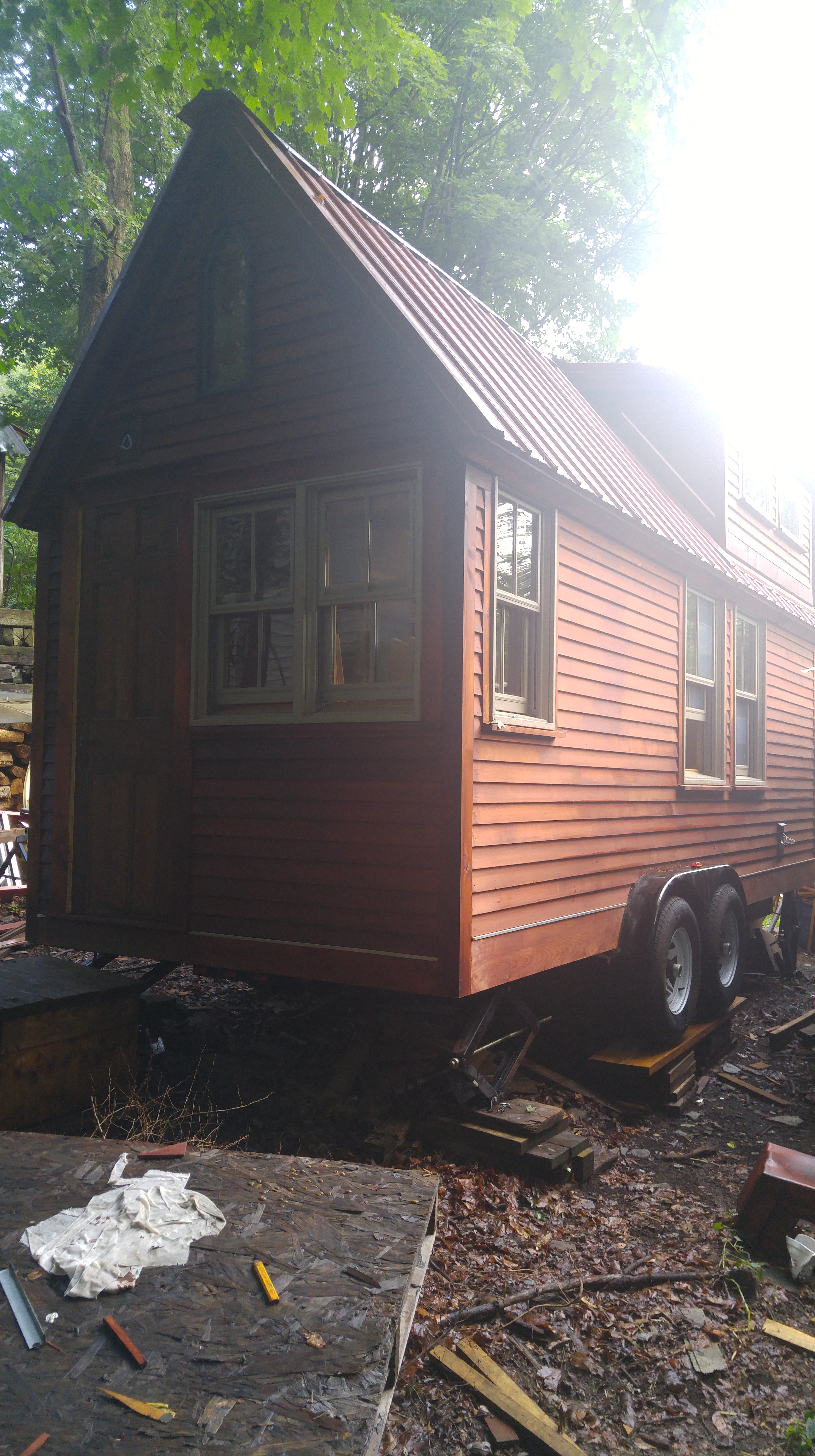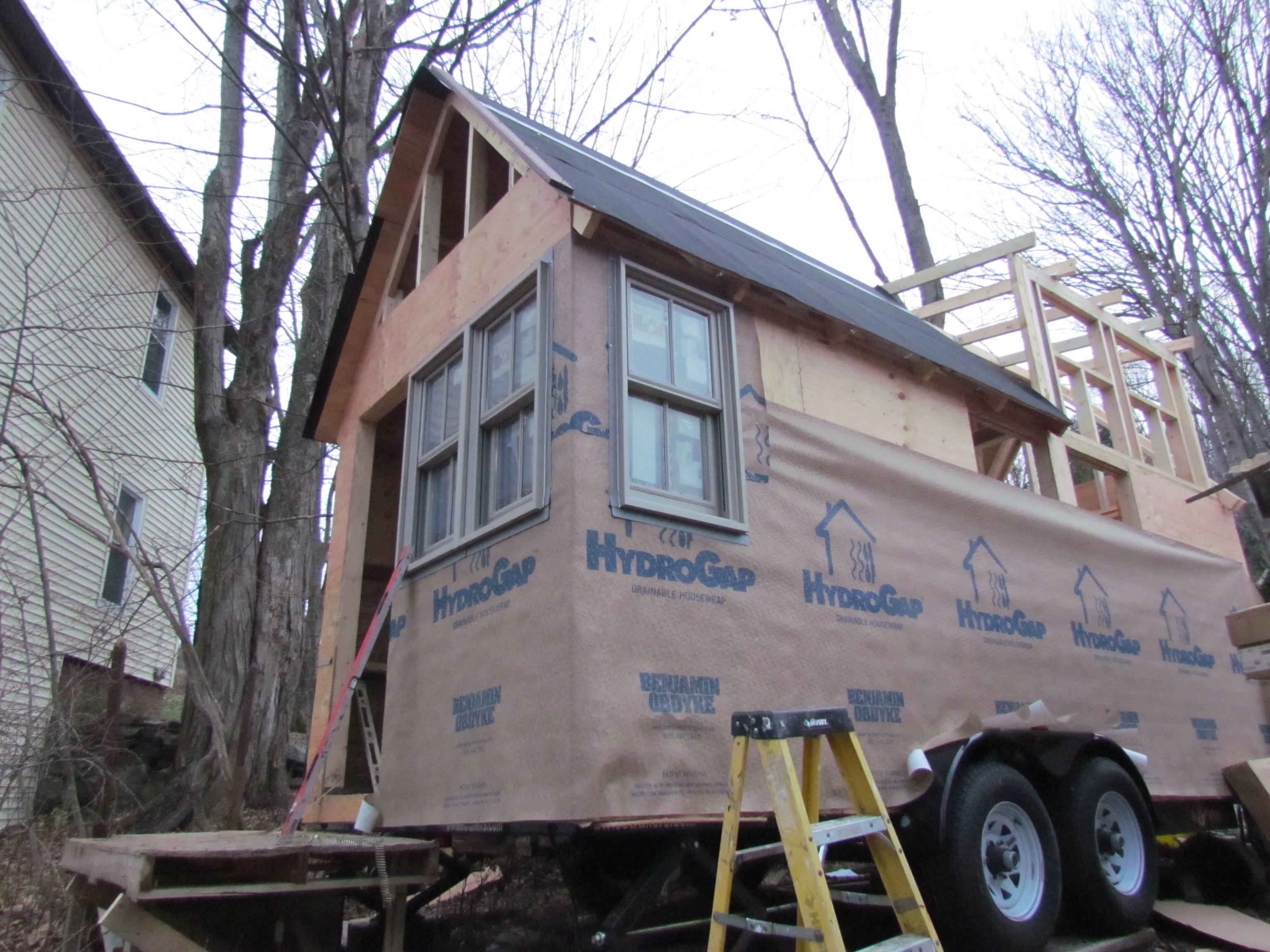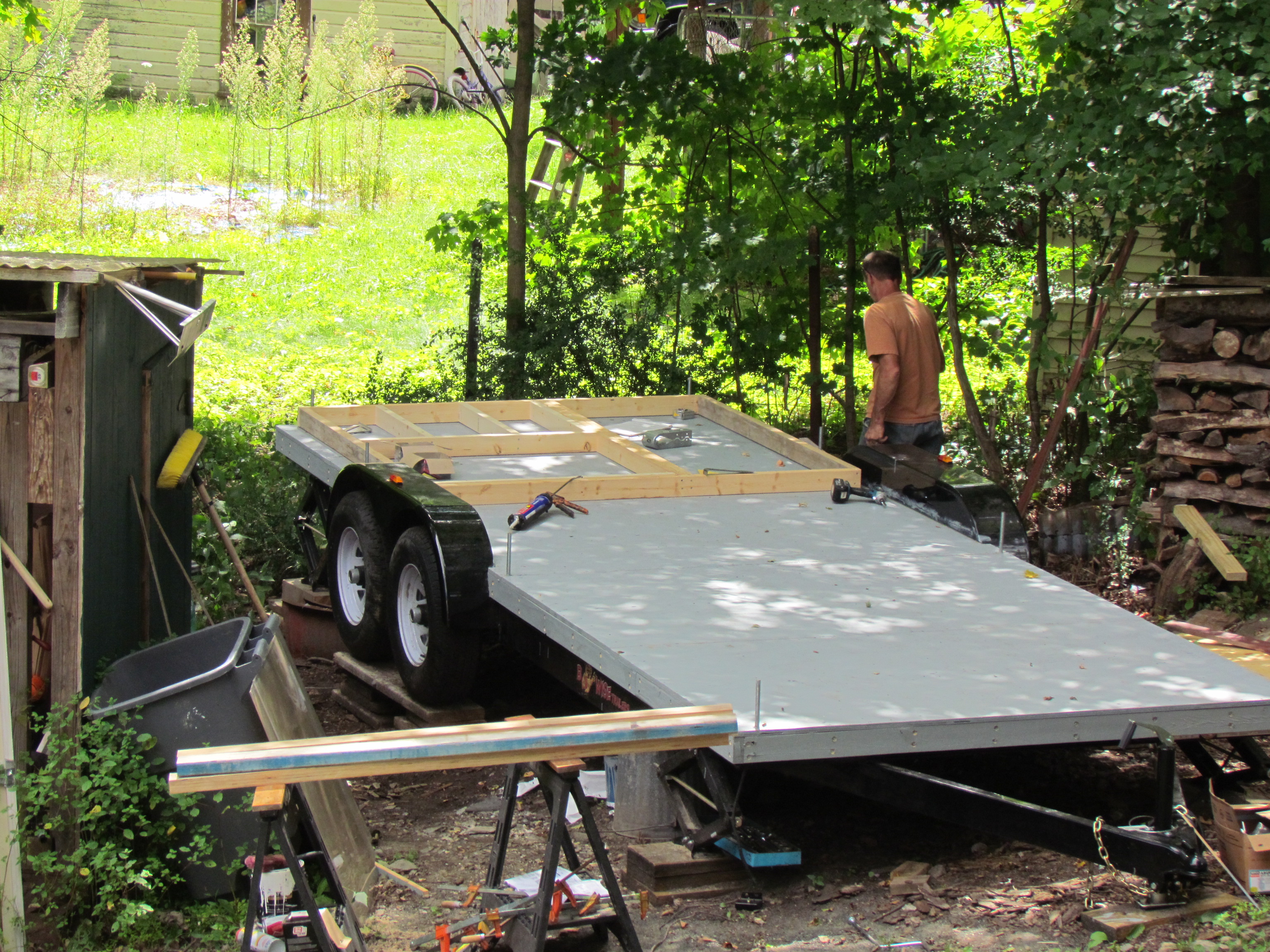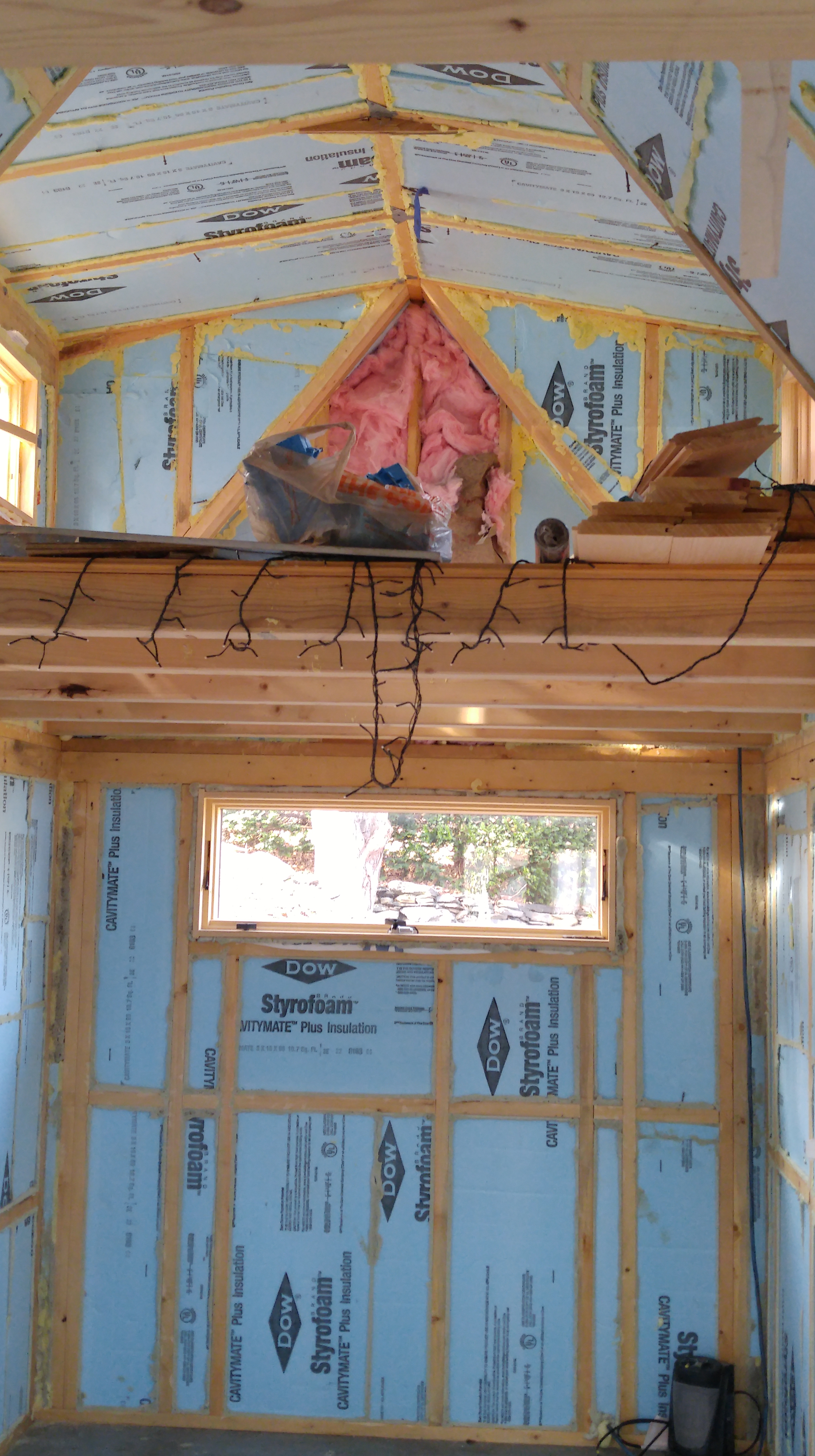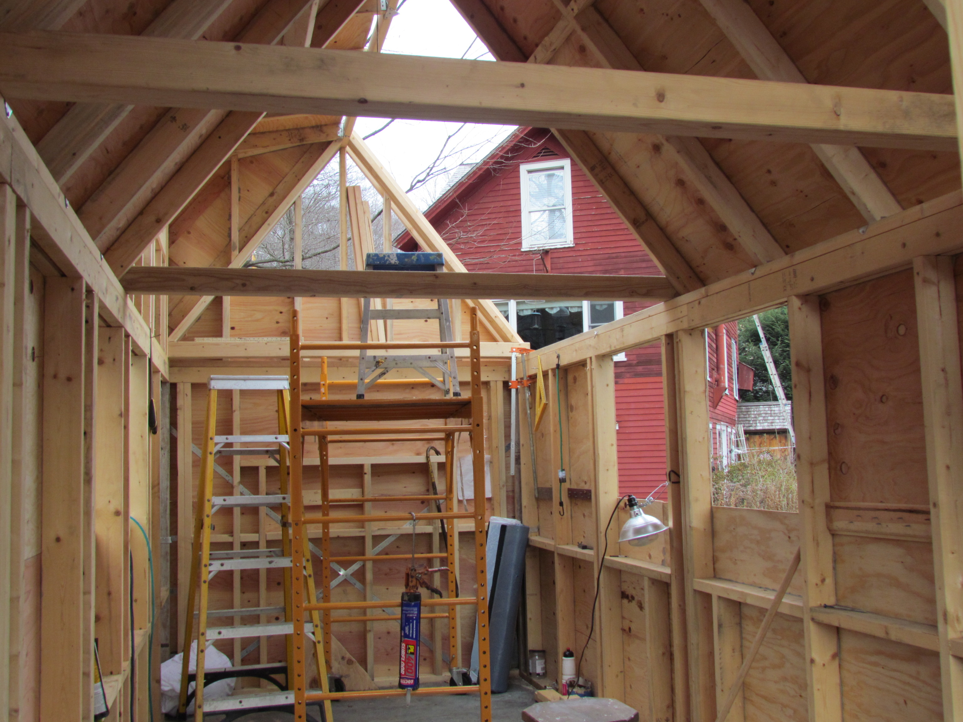 Two walls up!! It took just about all day on Monday, the holiday to do the side wall. The next one should go faster. It’s so exciting to see our little house starting to take shape. I know it looks like Chet is doing all the work but that is far from the truth, Camiila painted the deck when she was home the other weekend and I am manning the tablesaw, measuring and cutting. It’s just that I’m the one with the camera.
